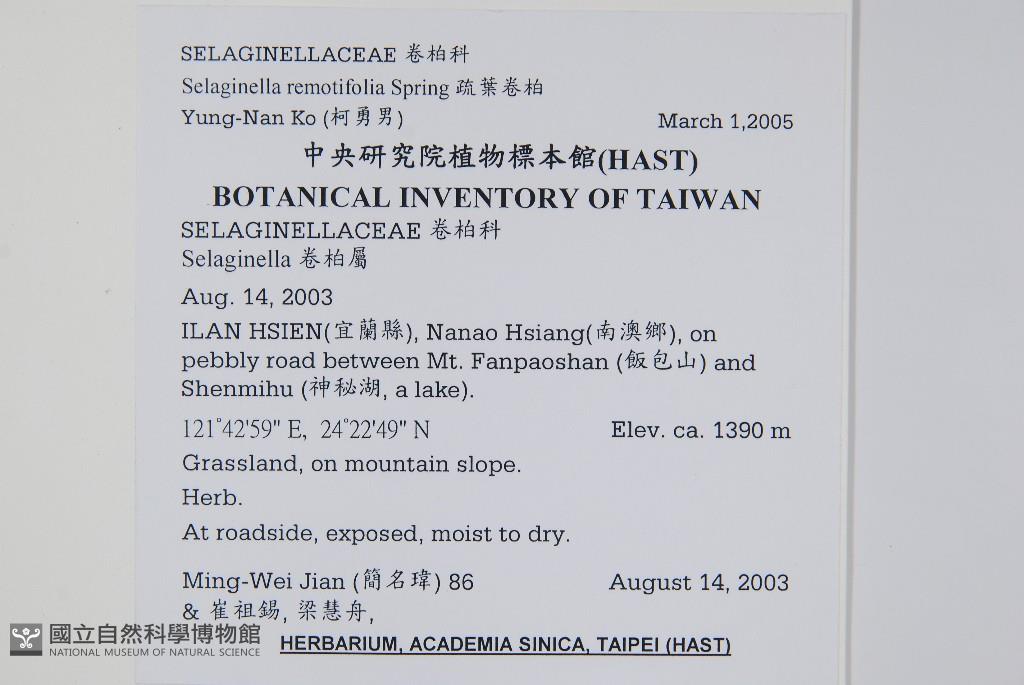 Scientific Name: Selaginella remotifolia Spring
