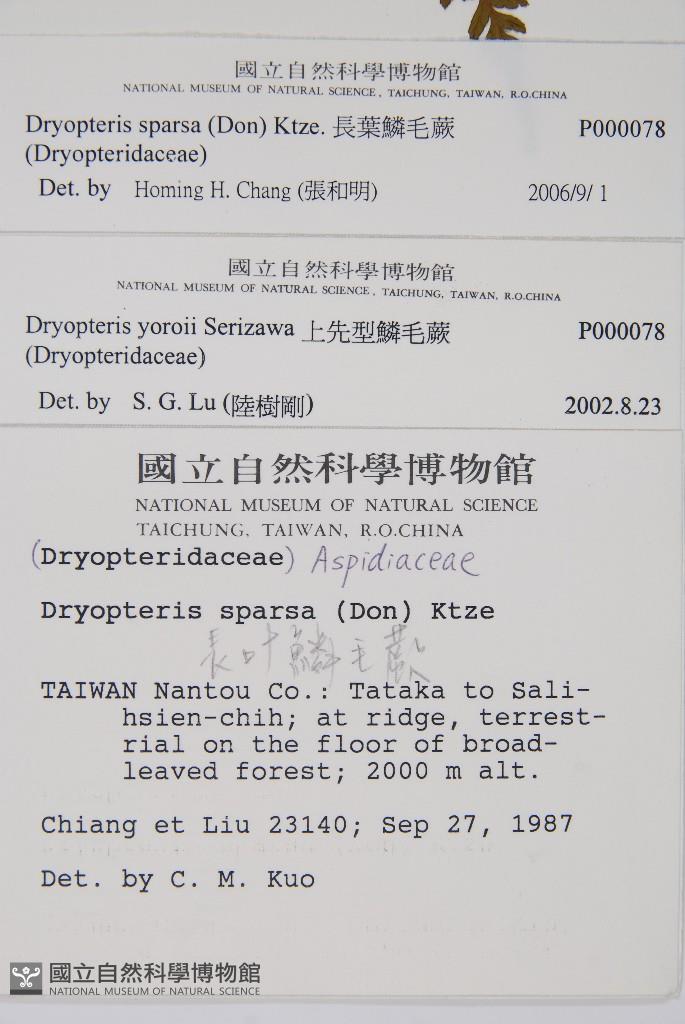 Scientific Name: Dryopteris sparsa (Don) Ktze.