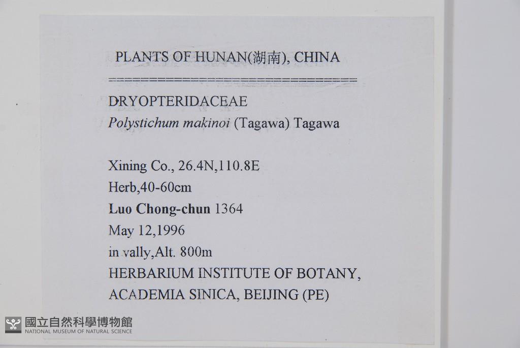 Scientific Name: Polystichum makinoi Tagawa