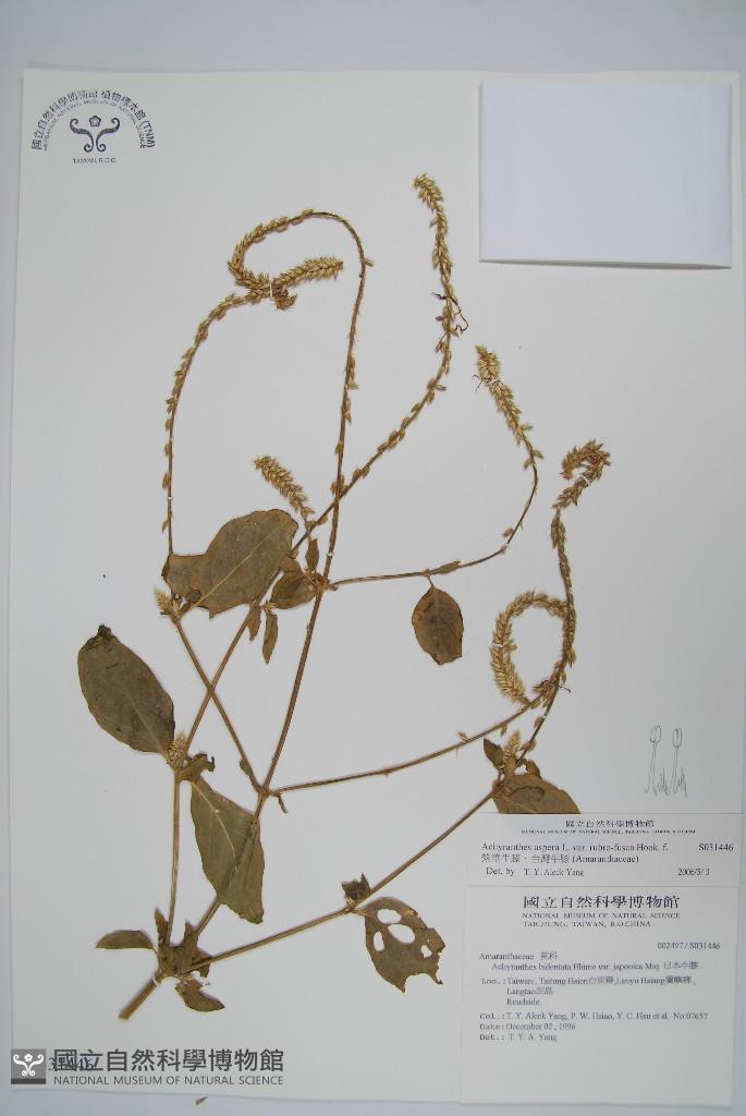 Scientific Name: Achyranthes aspera L. var. rubro-fusca Hook. f.