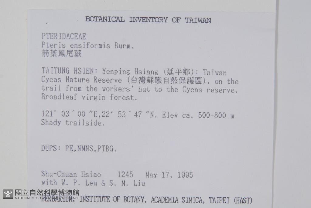 Collector:S. C. Hsiao, W. P. Leu & S. M. Liu