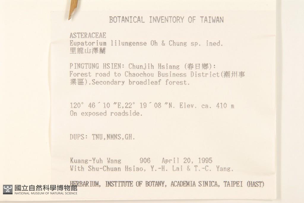 Collector:K. Y. Wang, S. C. Hsiao, Y. H. Lai & T. C. Yang