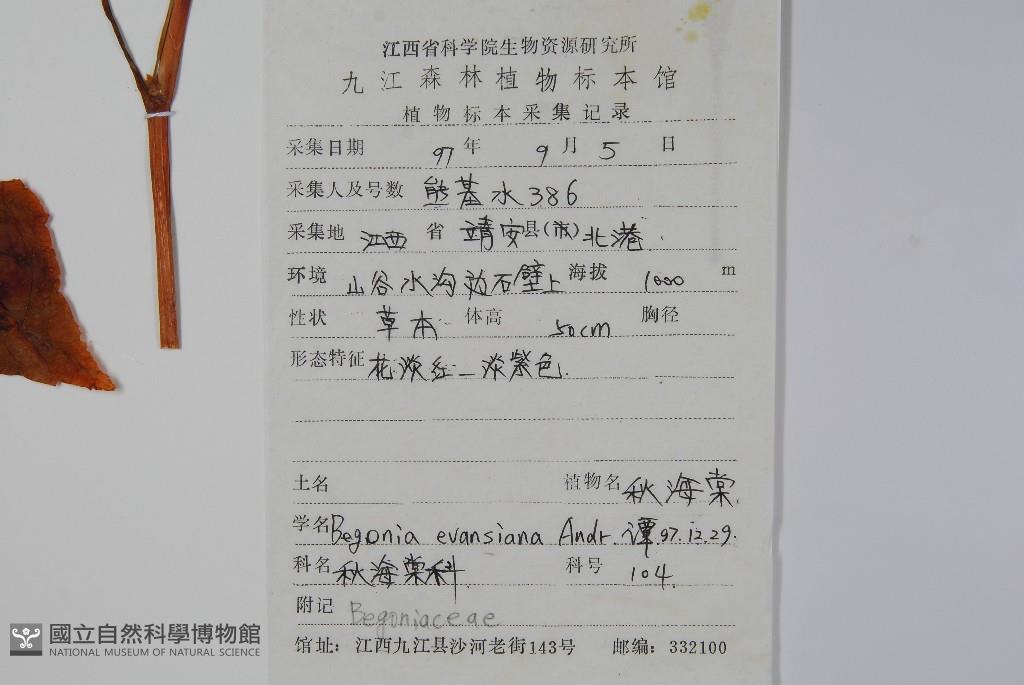Scientific Name: Begonia evansiana Andr.