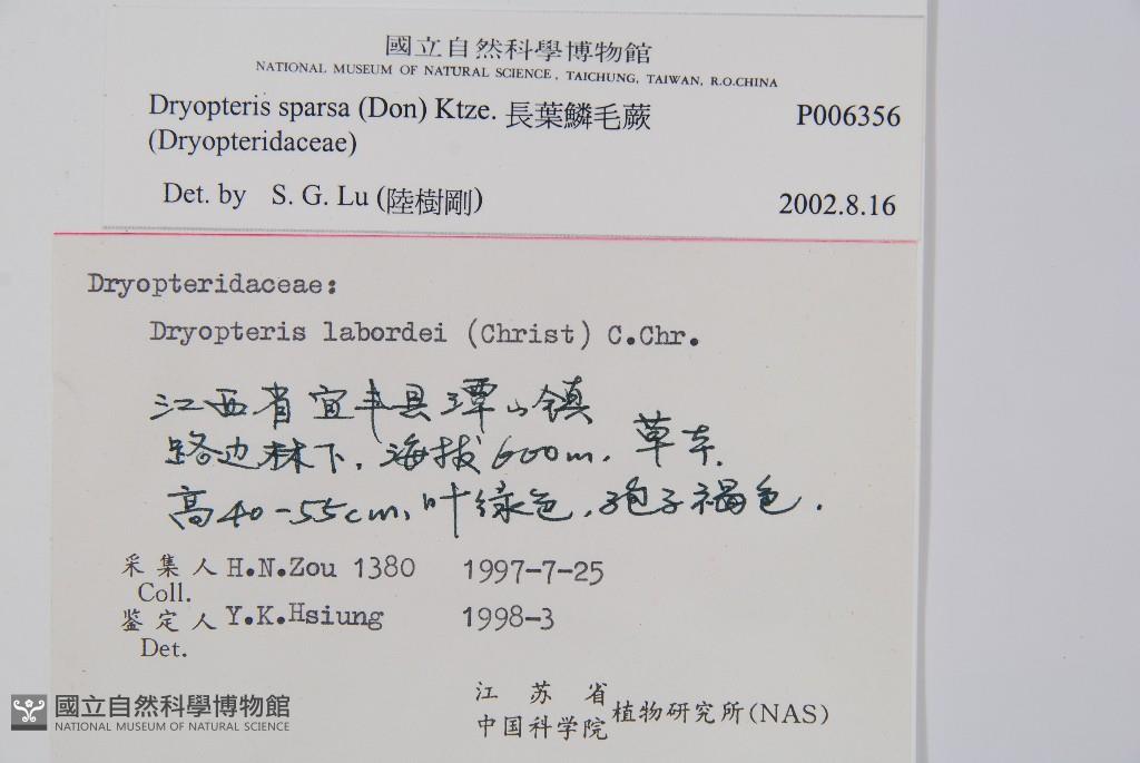 Scientific Name: Dryopteris sparsa (Don) Ktze.