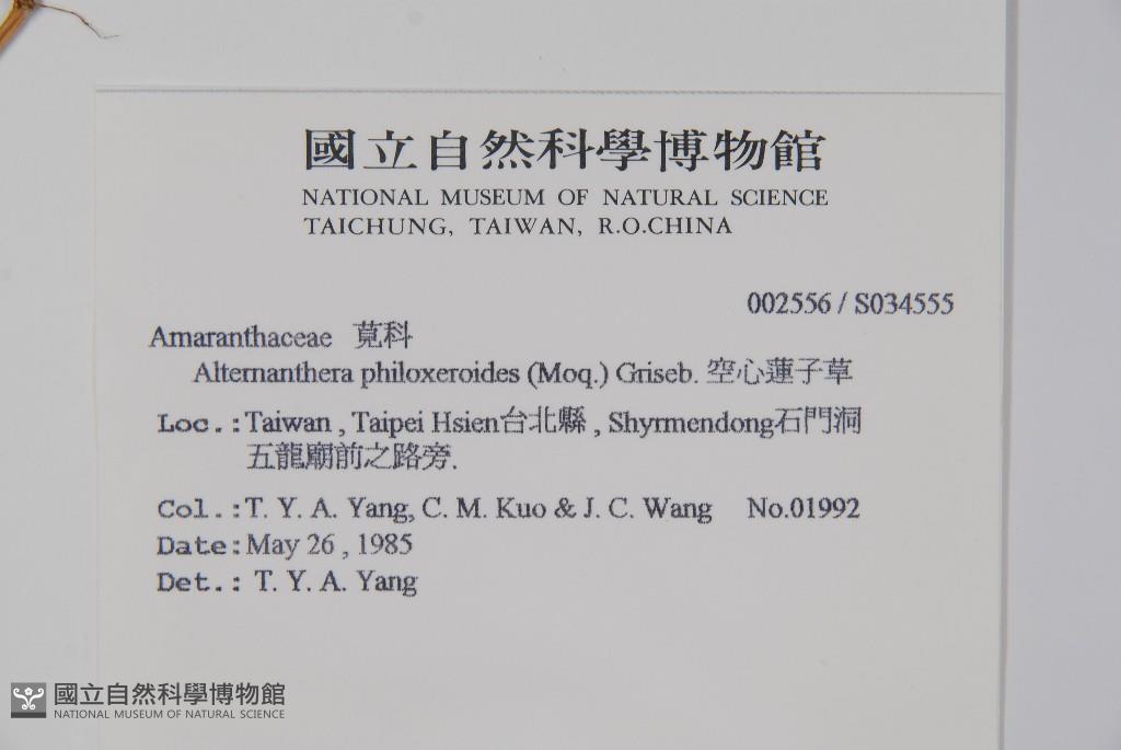 Collector:T. Y. A. Yang, C. M. Kuo & J. C. Wang