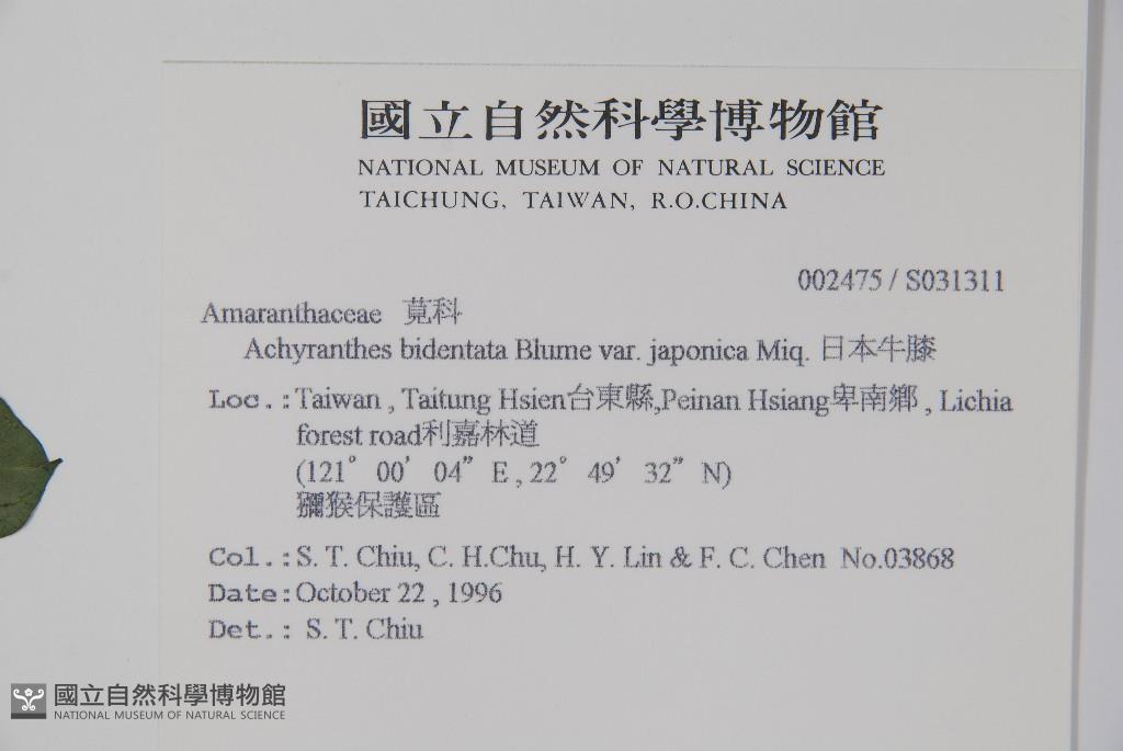 Collector:Shau-Ting Chiu (邱少婷), Che-Huei Chu (朱哲輝), Hsin-Yu Lin (林幸愉) & al.