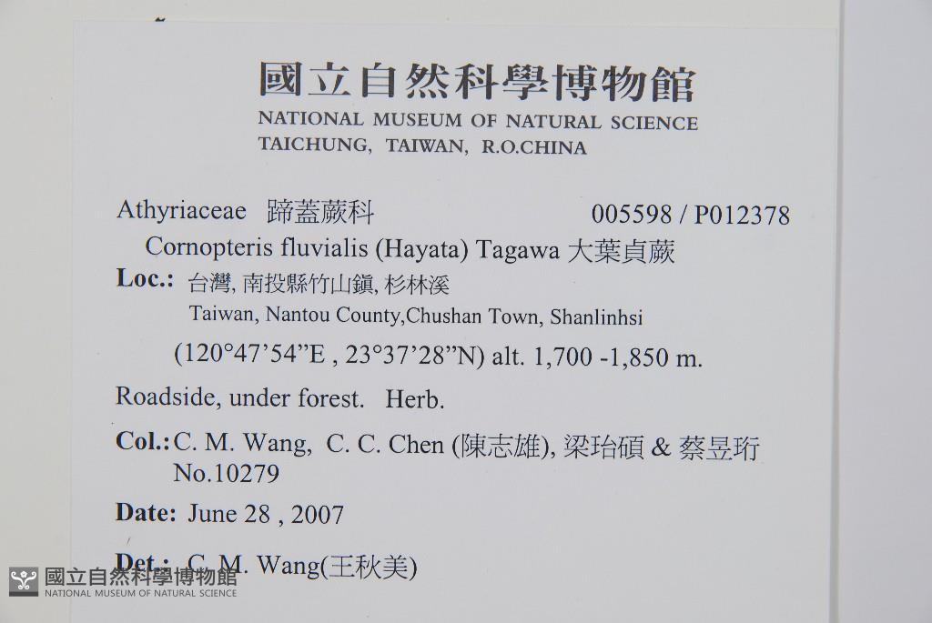 Collector:Chiu-Mei Wang (王秋美), Chih-Hsiung Chen (陳志雄), Yi-Shuo Liang (梁珆碩), & al.