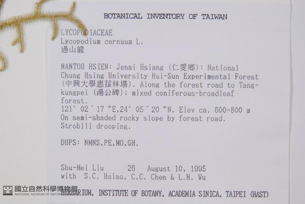 Collector:S. M. Liu, S. C. Hsiao, C. C. Chen & L. H. Wu