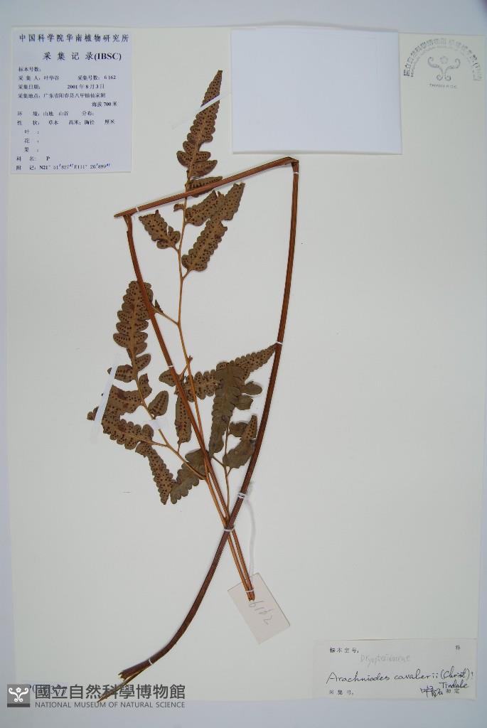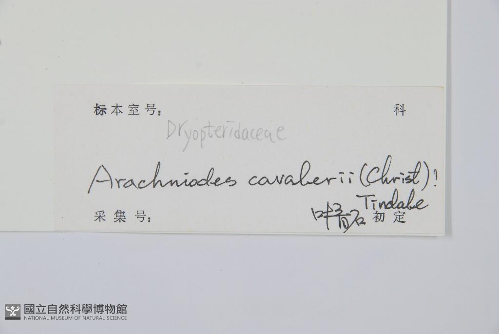 Scientific Name: Arachniodes cavalerii (Christ) Ching