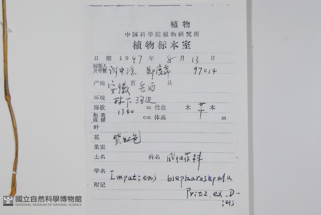 Scientific Name: Impatiens blepharospala Pritz. & Diels