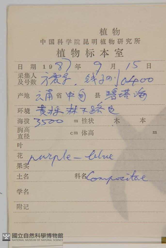 Collector:Zheng-Dong Fang (方震東) & Ze-Gang Qien (錢子剛)
