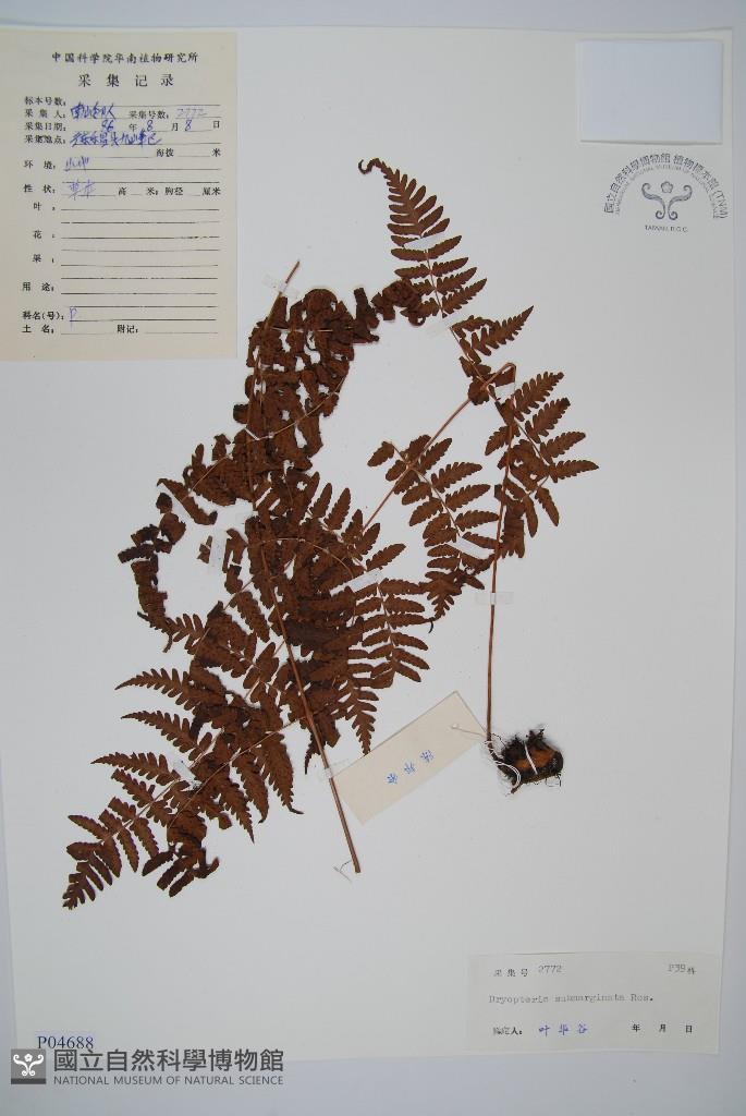 Scientific Name: Dryopteris submarginata Ros.