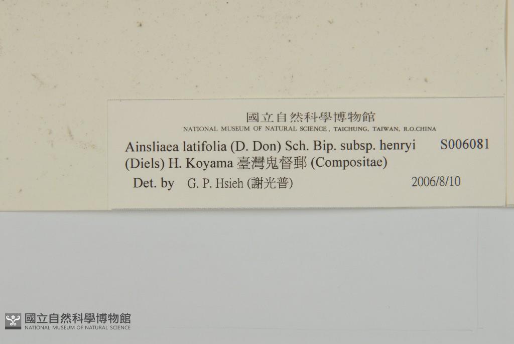 Scientific Name: Ainsliaea latifolia (D. Don) Sch. Bip. subsp. henryi (Diels) H. Koyama