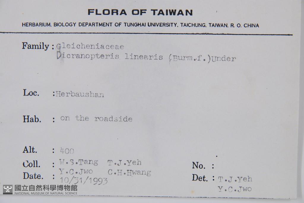 Collector:W. S. Tang, T. J. Yeh, Y. C. Jwo & C. H. Hwang