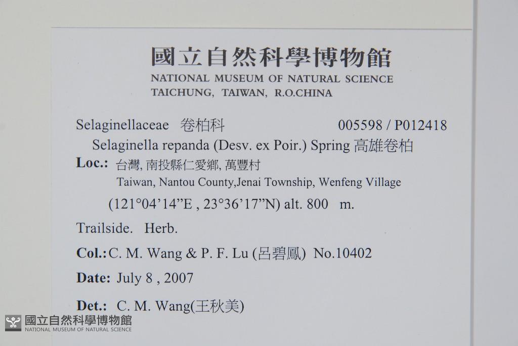Collector:Chiu-Mei Wang (王秋美), & Pi-Fong Lu (呂碧鳳)