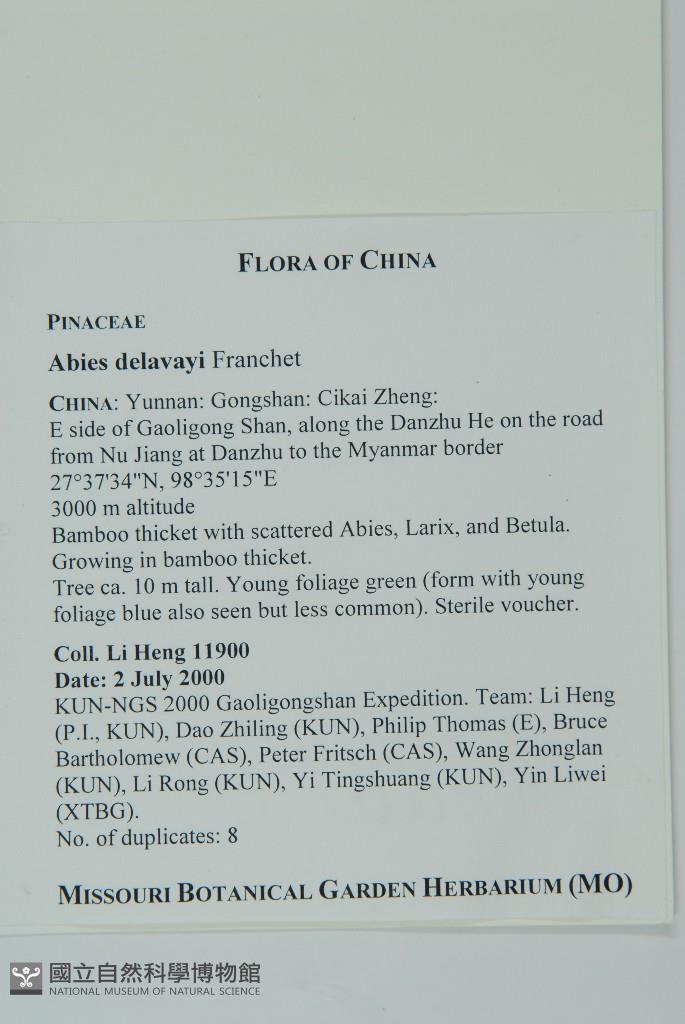 Scientific Name: Abies delavayi Franch.