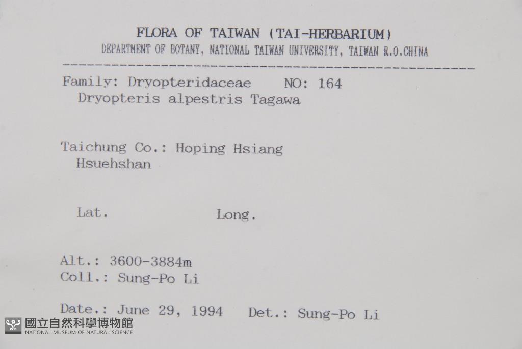 Scientific Name: Dryopteris alpestris Tagawa