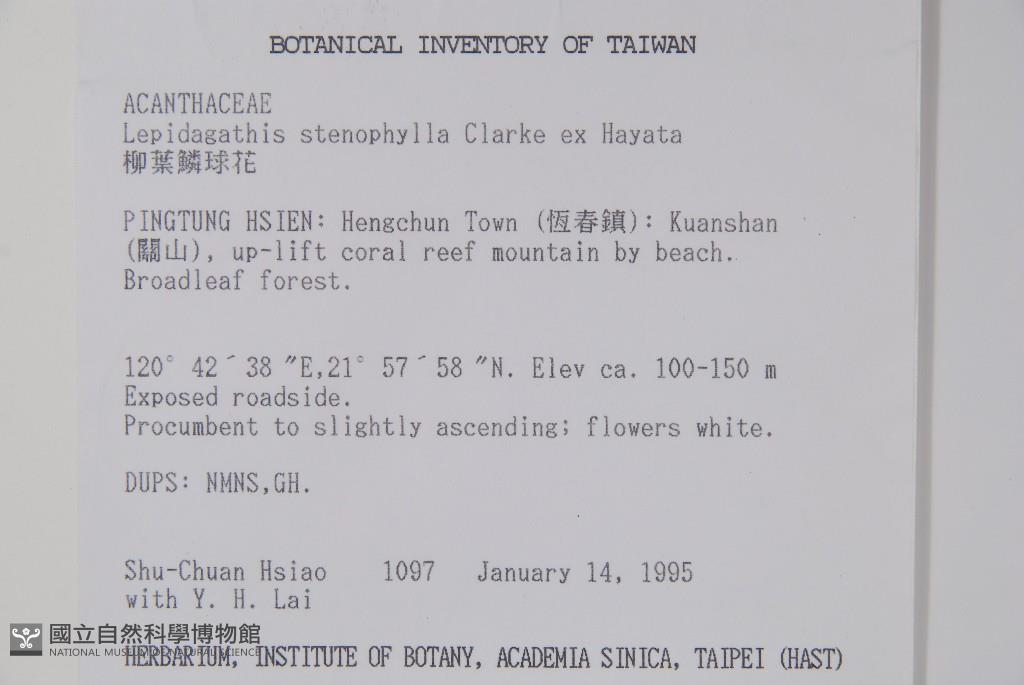 Collector:S. C. Hsiao & Y. H. Lai