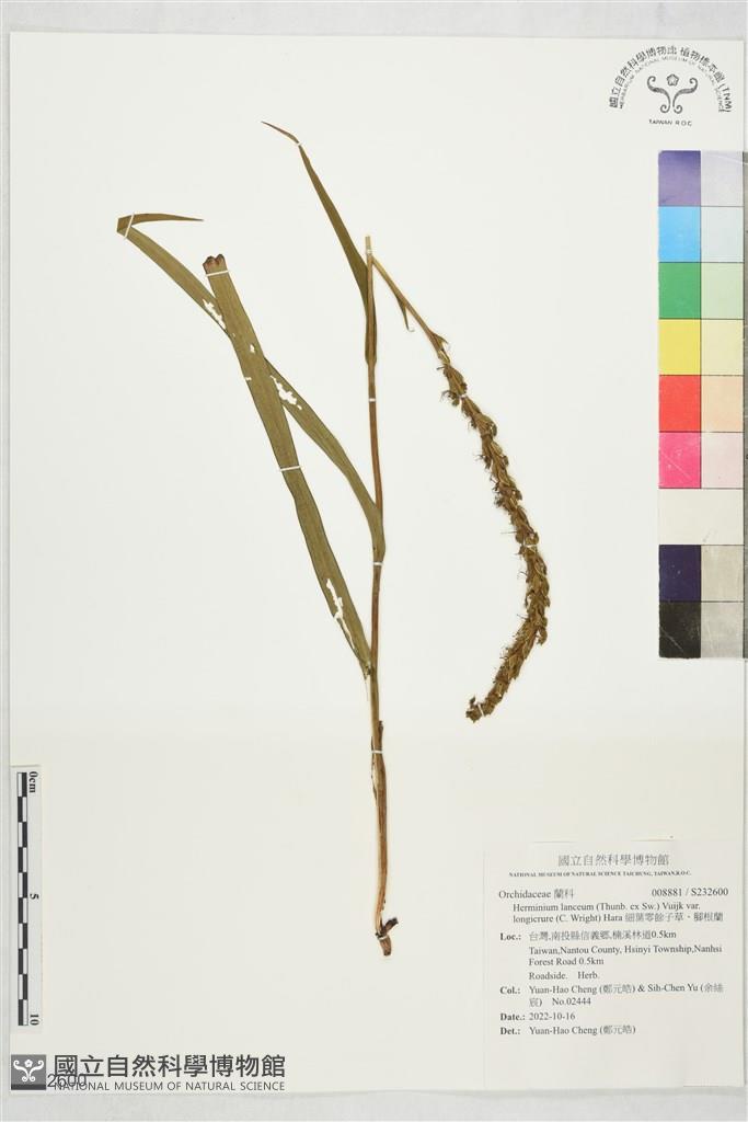 Scientific Name: Herminium lanceum (Thunb. ex Sw.) Vuijk var. longicrure (C. Wright) Hara