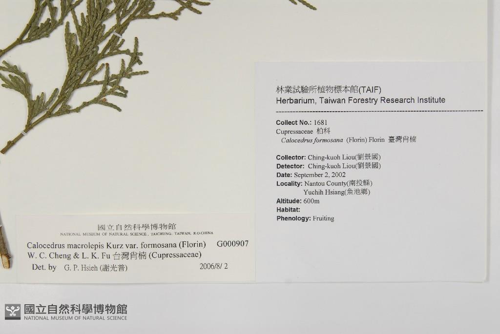 Scientific Name: Calocedrus macrolepis Kurz var. formosana (Florin) W. C. Cheng & L. K. Fu