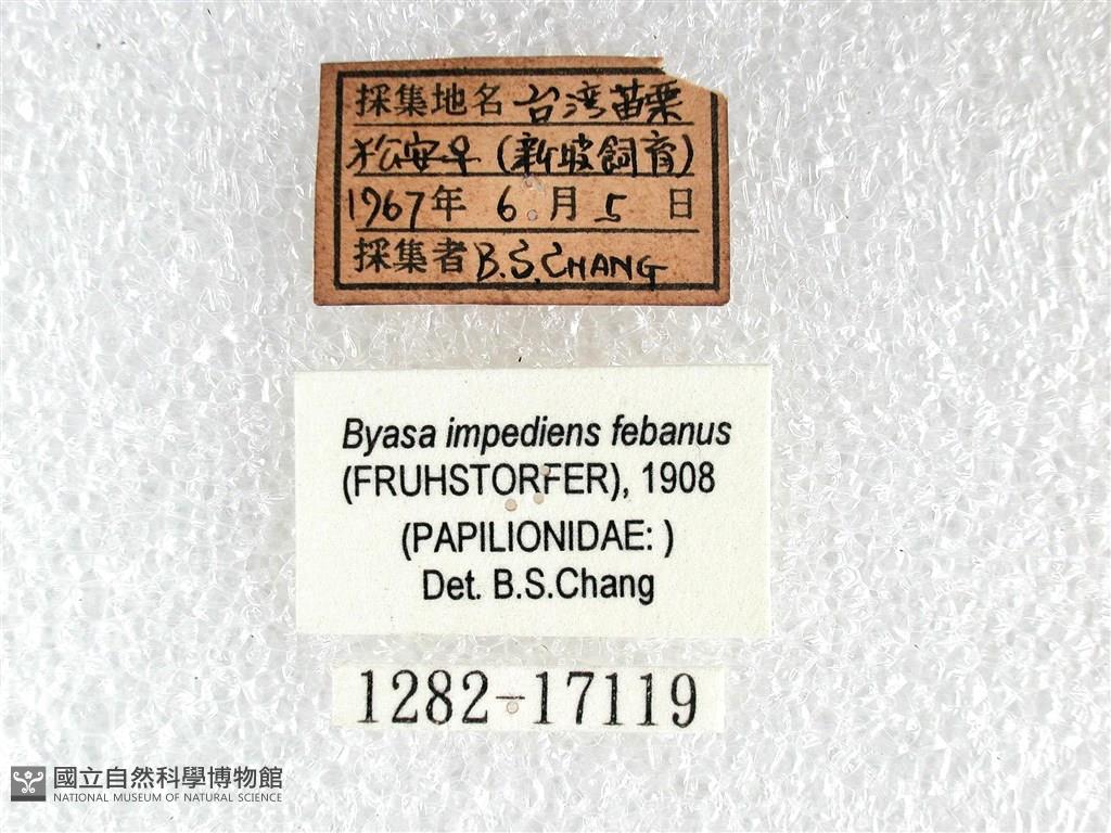 Scientific Name:Byasa impediens febanus (Fruhstorfer, 1908)