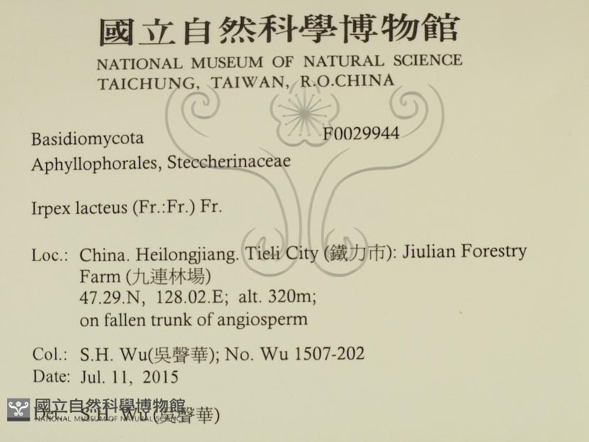 Phylum:Incertae sedis,Agaricomycetes ,Polyporales ,Irpicaceae