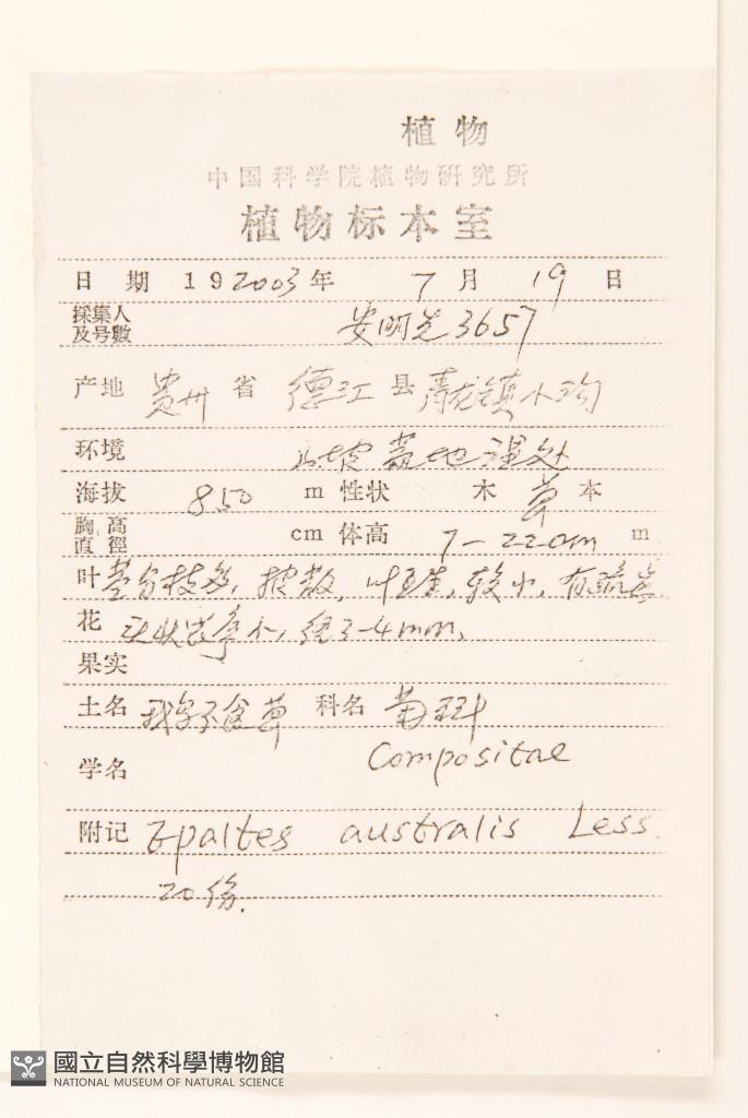 Collector's No.:03657