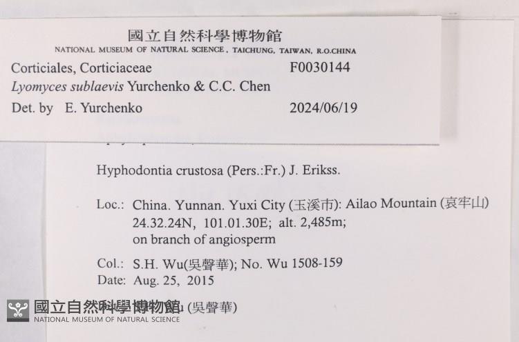 Lyomyces sublaevis Yurchenko & C.C. Chen