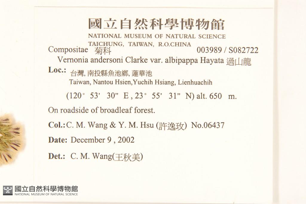 Scientific Name: Vernonia andersoni Clarke var. albipappa Hayata