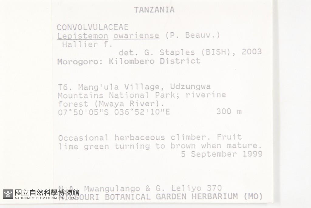 Collector:N. A. Mwangulango & G. Leliyo