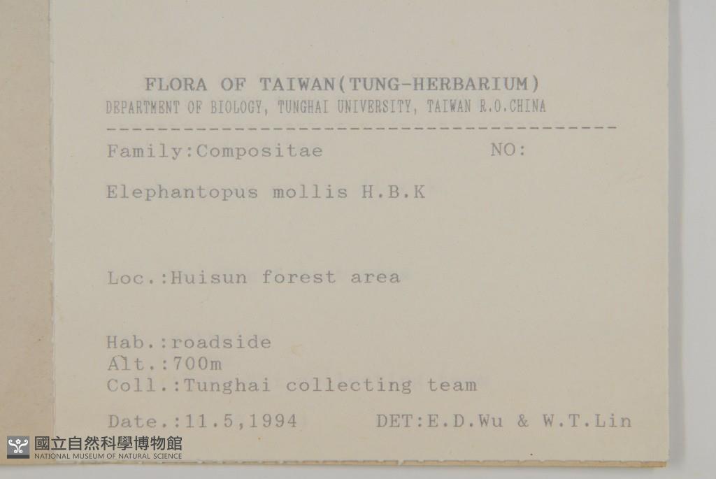 Collector:Tunghai collesting team