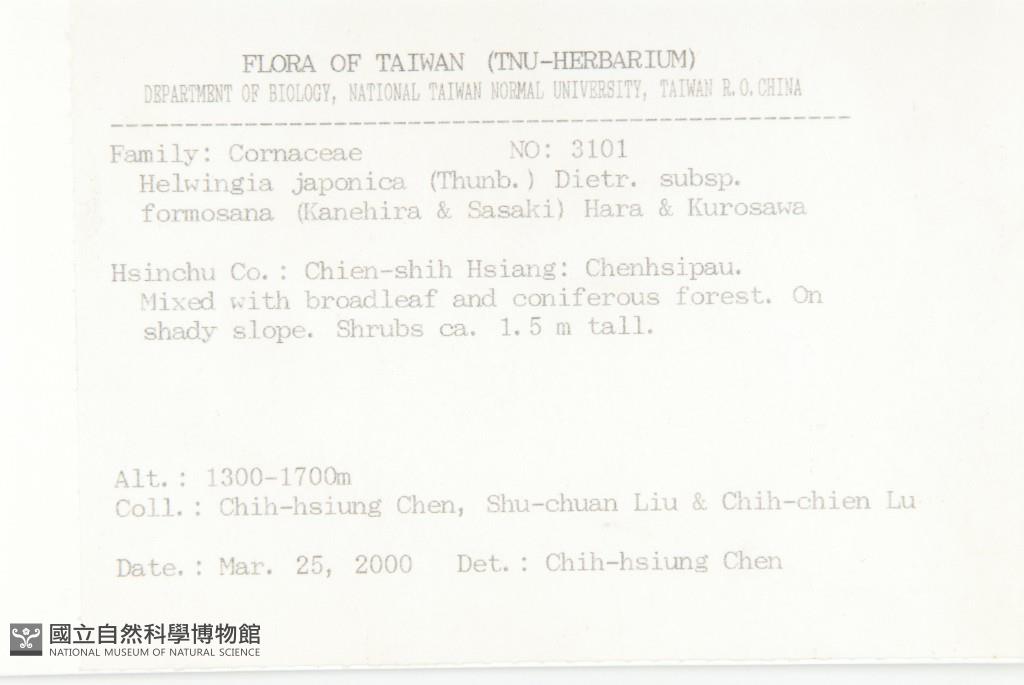 Scientific Name: Helwingia japonica (Thunb.) Dietr. subsp. formosana (Kanehira & Sasaki) Hara & Kurosawa