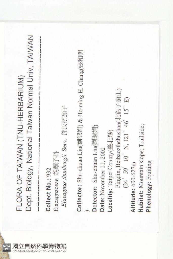 Collector:Shu-chuan Liu(劉淑娟) & Ho-Ming H. Chang(張和明)