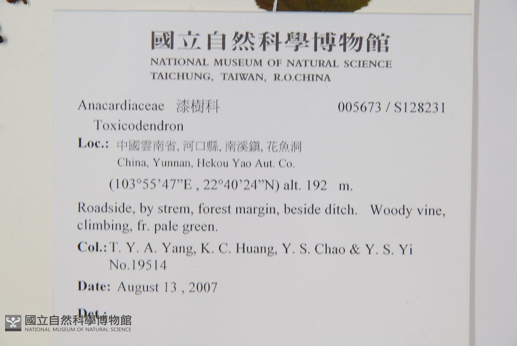 Collector:T. Y. A. Yang, K. C. Huang, Y. S. Chao & Y. S. Yi