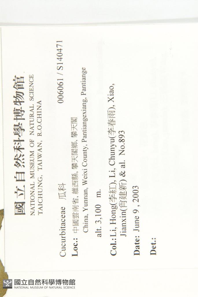 Collector:Hong Li (李紅), Chun-Yu Li (李春雨), Jian-Xin Xiao(肖建新), & al.