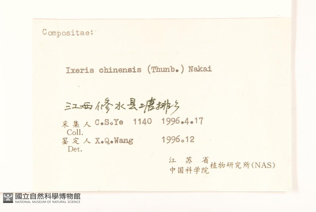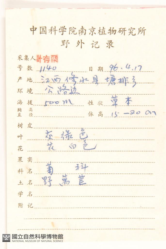 Collector:C. S. Ye(葉存粟)