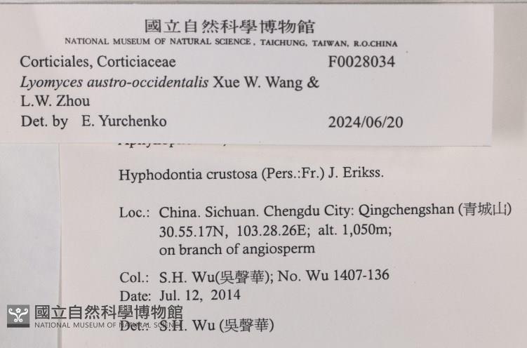 Lyomyces austro-occidentalis Xue W. Wang & L.W. Zhou