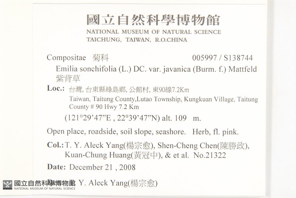 Collector:T. Y. Aleck Yang(楊宗愈), Shen-Cheng Chen(陳勝政), Kuan-Chung Huang(黃冠中), & et al.