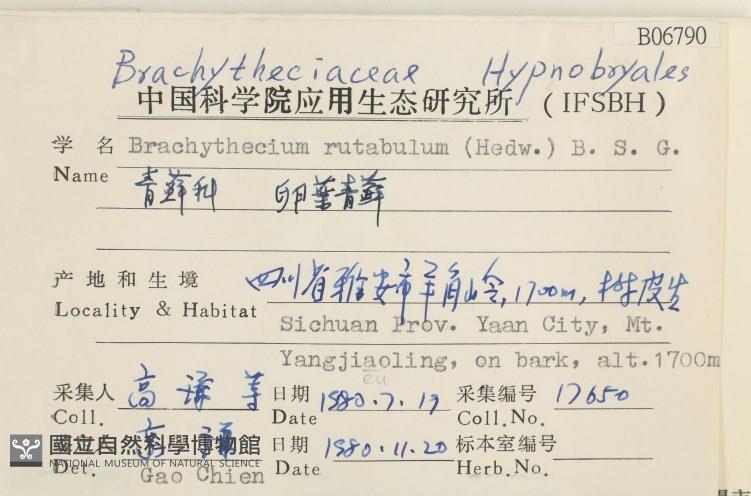 Collector:Chian Kao et al. (高謙等)