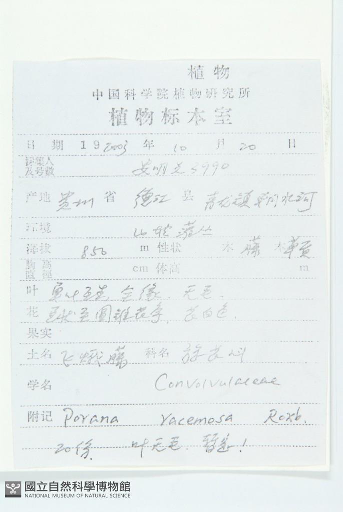 Scientific Name: Porana racemosa Roxb.