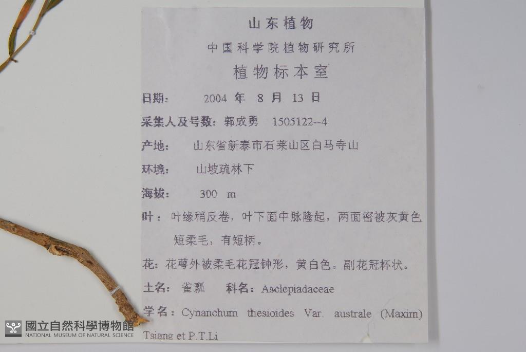 Scientific Name: Cynanchum thesioides K.Schum. var. australe (Maxim.) Tsiang & P.T.Li