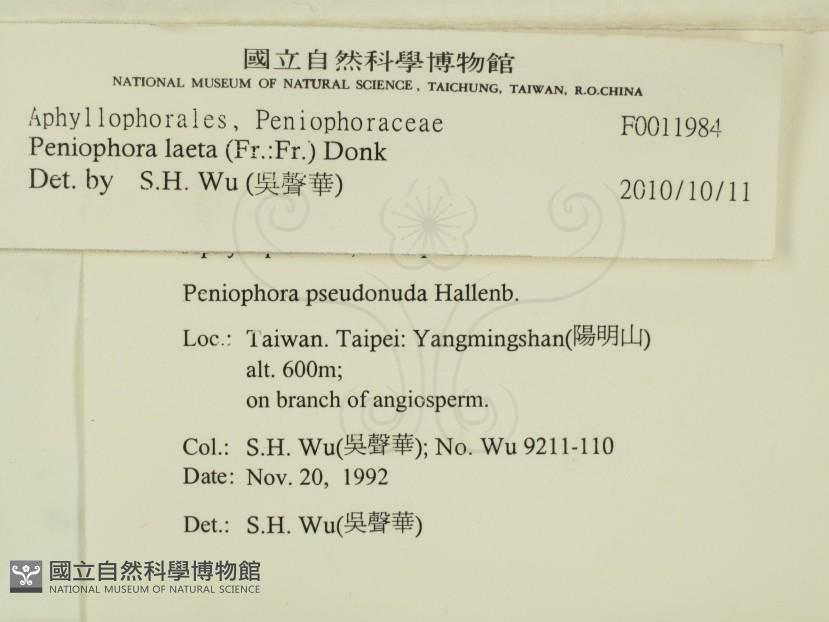 Phylum:Incertae sedis,Agaricomycetes ,Aphyllophorales ,Peniophoraceae
