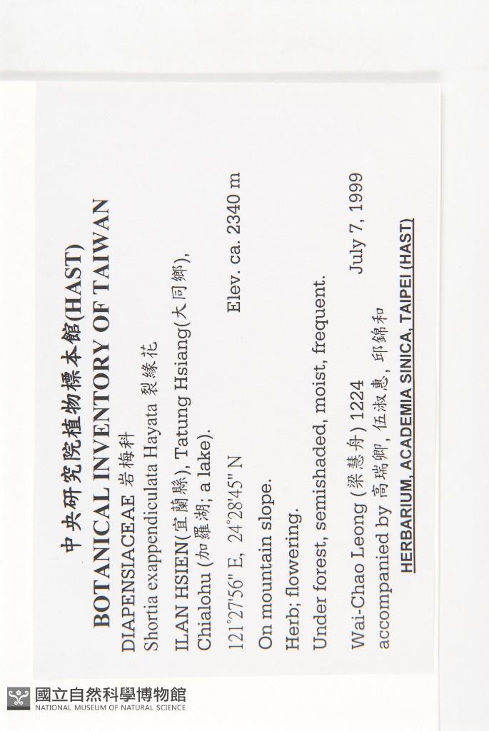 Scientific Name: Shortia exappendiculata Hayata