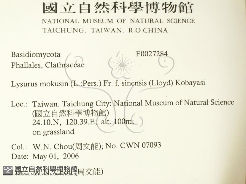 Lysurus mokusin (L.:Pers.) Fr. f. sinensis (Lloyd) Kobay