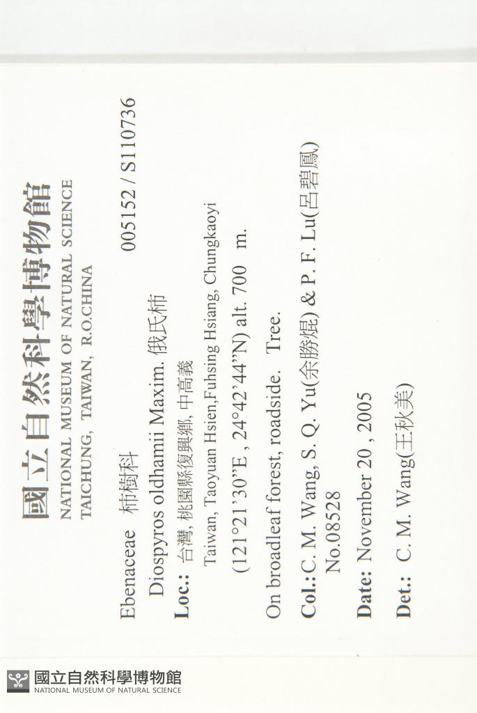 Collector:C. M. Wang, S. Q. Yu(余勝焜) & P. F. Lu(呂碧鳳)