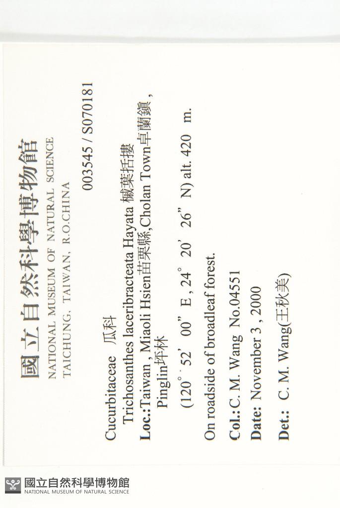 Scientific Name: Trichosanthes laceribracteata Hayata
