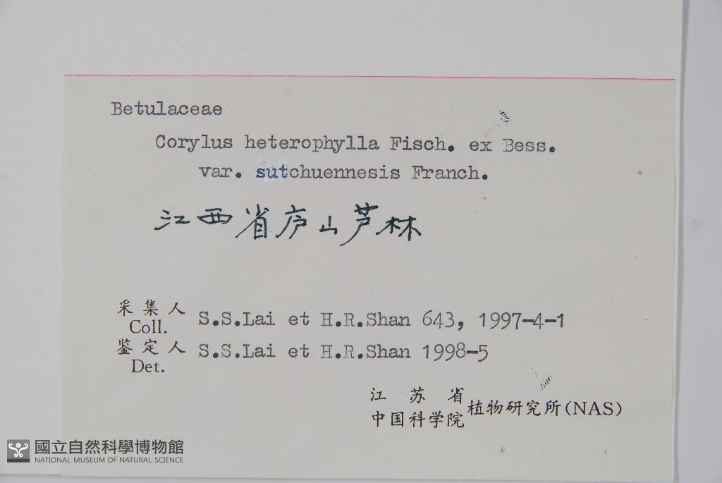 Scientific Name: Corylus heterophylla Fisch. ex Bess. var. sutchuenensis Franch.