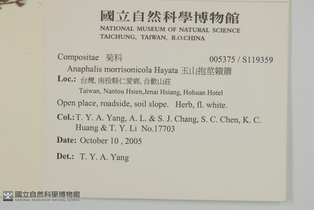 Collector:T. Y. A. Yang, A. L. & S. J. Chang, S. C. Chen, K. C. Huang & T. Y. Li