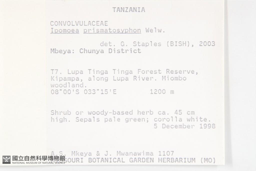 Scientific Name: Ipomoea prismatosyphon Welw.