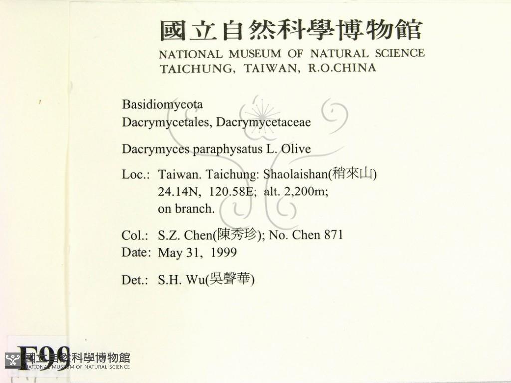 Phylum:Incertae sedis,Dacrymycetes ,Dacrymycetales ,Dacrymycetaceae